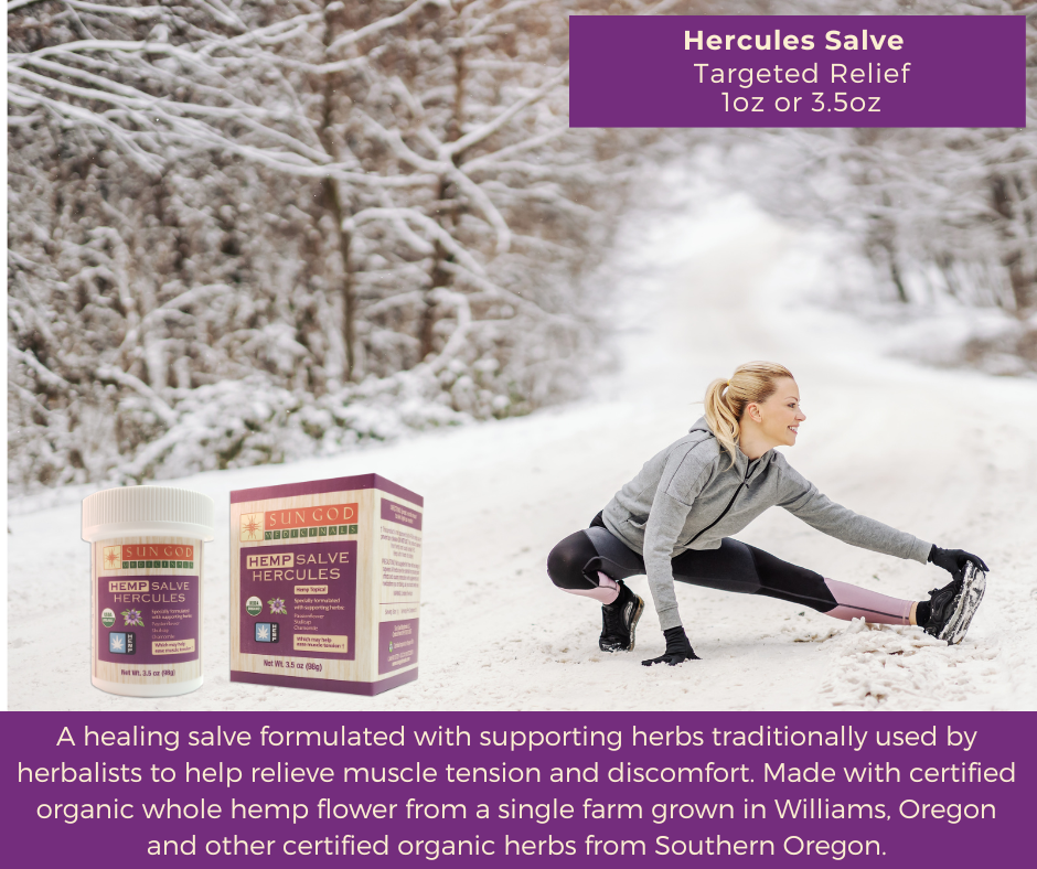 Our Hercules Muscle Ease Salve is crafted with a blend of certified organic oils and herbs traditionally used by herbalists to support muscle recovery and ease discomfort. Formulated with skullcap, passionflower, and chamomile, this salve helps soothe overworked muscles, while deeply moisturizing olive oil, coconut oil, and jojoba oil nourish the skin. Infused with Oregon-grown whole hemp flower oil for added relief, this salve is a favorite among athletes and anyone seeking natural muscle support.